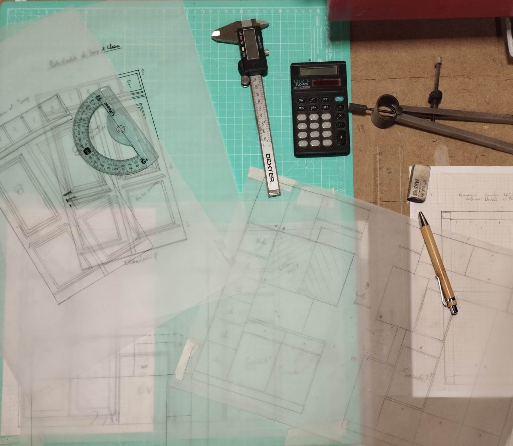 The lockdown of 2020 prompted me to join my partner in the Gers where I met Pierre Lepiney (atelierslepiney.com). I caught the bug for traditional woodworking, attention to detail and the passion for a job well done. It is thanks to him that I started to make paper plans and that I enjoy spending time on the finish touches !